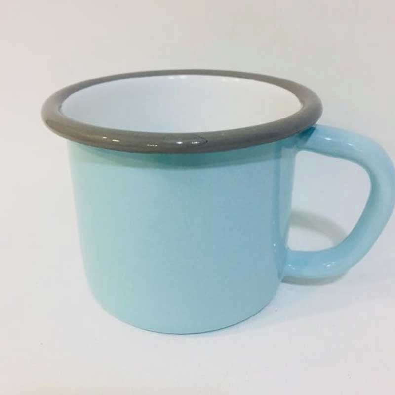 Emaye Kupa Mavi Gri Ölçü: 8,5 x 7,5 cm Renk: İç Beyaz Dış Mavi Kordon Gri Kapasite: 350 ml. Materyal: Çelik Sac / Emaye Emay...